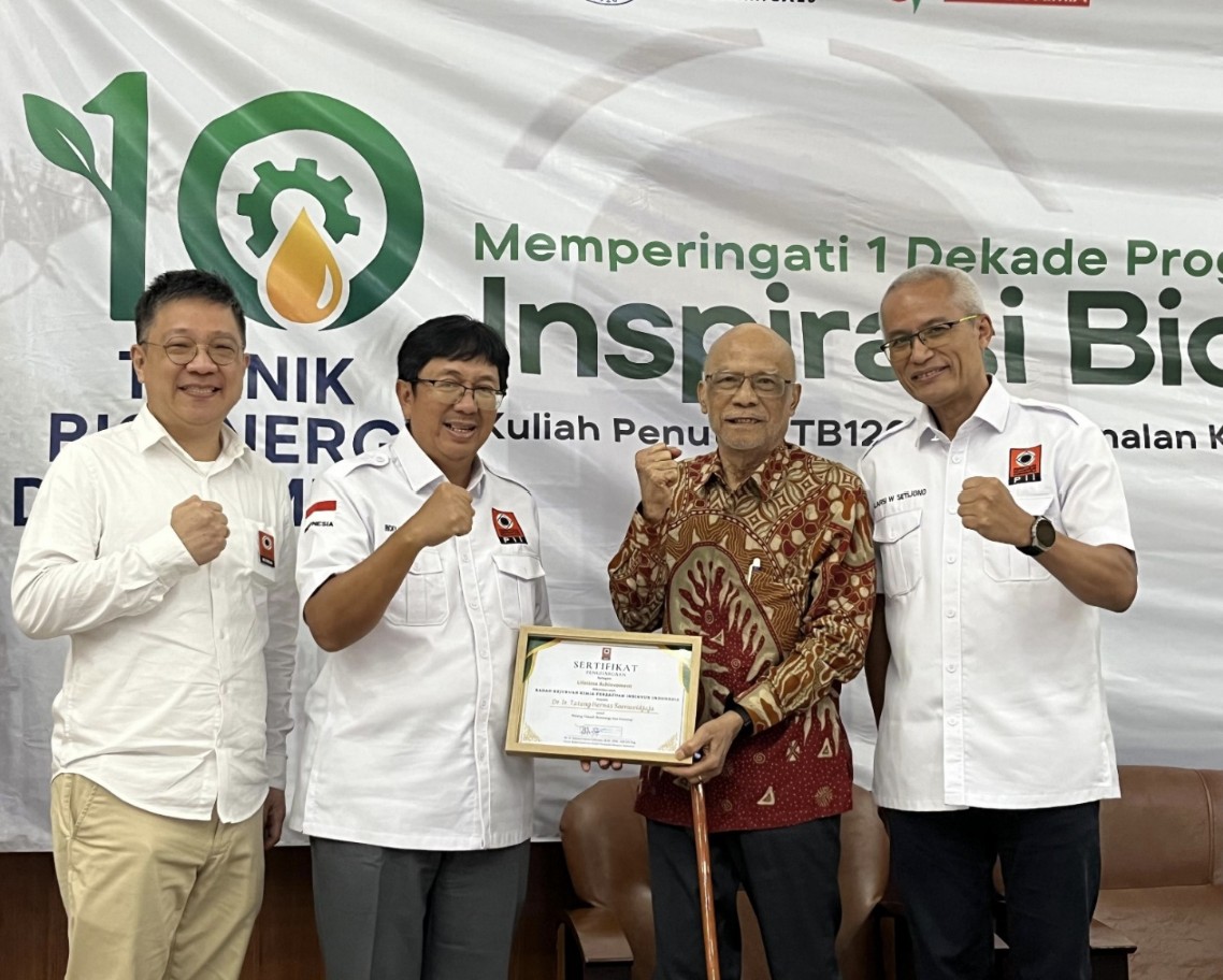 JATINANGOR, itb.ac.id – Dr. Tatang Hernas Soerawidjaja, purnabakti sekaligus penggagas Teknik Bioenergi dan Kemurgi Institut Teknologi Bandung (ITB) serta tokoh senior di bidang energi terbarukan, meraih dua penghargaan bergengsi atas dedikasi panjangnya. Ia menerima Lifetime Achievement Award dari Persatuan Insinyur Indonesia (PII) dan dinobatkan sebagai “Tokoh Penggiat Bioenergi Indonesia” oleh Asosiasi Produsen Biofuel Indonesia (APROBI).