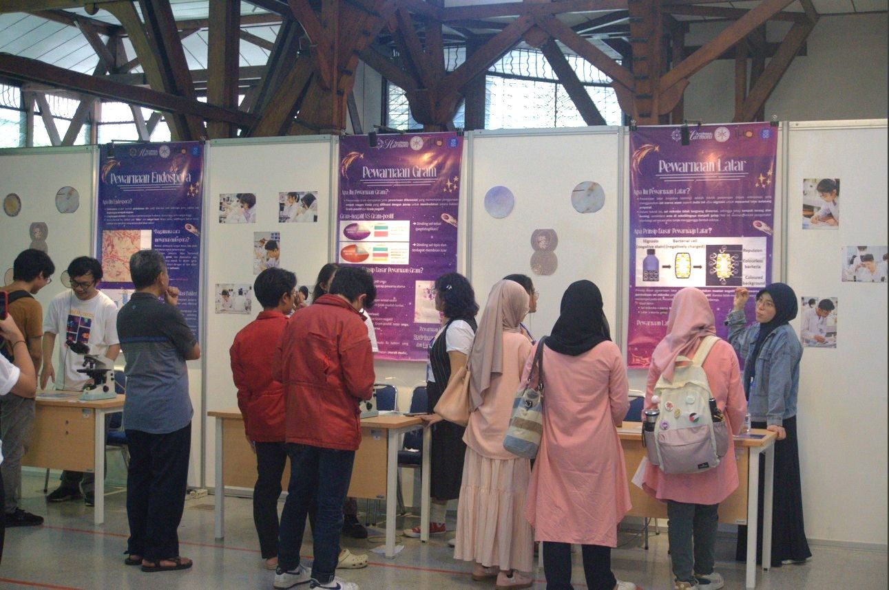 Setelah itu, pengunjung diarahkan menuju MicroLabs, zona yang dirancang menyerupai laboratorium mini dengan beragam simulasi eksperimen. Melalui pengamatan mikroba dengan mikroskop, praktik sederhana isolasi mikroba menggunakan spread plate tiruan, serta teknik droplet plate, para peserta dapat merasakan pengalaman langsung layaknya ilmuwan muda. Kehadiran photobooth interaktif juga menambah keseruan acara, menjadi sarana hiburan sekaligus tempat pengunjung mengabadikan momen dalam festival.
