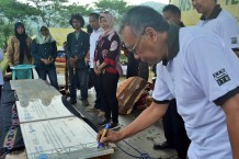 *Wakil Rektor Bidang Akademik, dan Kemahasiswaan ITB Prof. Ir. Bermawi Priyatna Iskandar M.Sc.,Ph.D., melakukan penandatanganan prasasti yang nantinya akan dipasang di berbagai fasilitas yang berhasil dibangun tim mahasiswa KKN-T ITB, di Desa Cihea, Kabupaten...