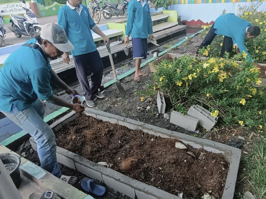 Peserta dibagi ke dalam lima kelompok kecil untuk mengikuti praktik pembuatan pupuk organik padat (bokashi) dan pupuk organik cair dengan memanfaatkan limbah sagu kering. Pupuk yang telah dibuat kemudian langsung diaplikasikan ke raised bed yang dibangun menggunakan papan kayu dan batako sebagai media tanam, serta pada lahan gambut. Komoditas yang dibudidayakan meliputi jahe dan berbagai jenis sayuran seperti kangkung, pakcoy, cabai, dan tomat.
