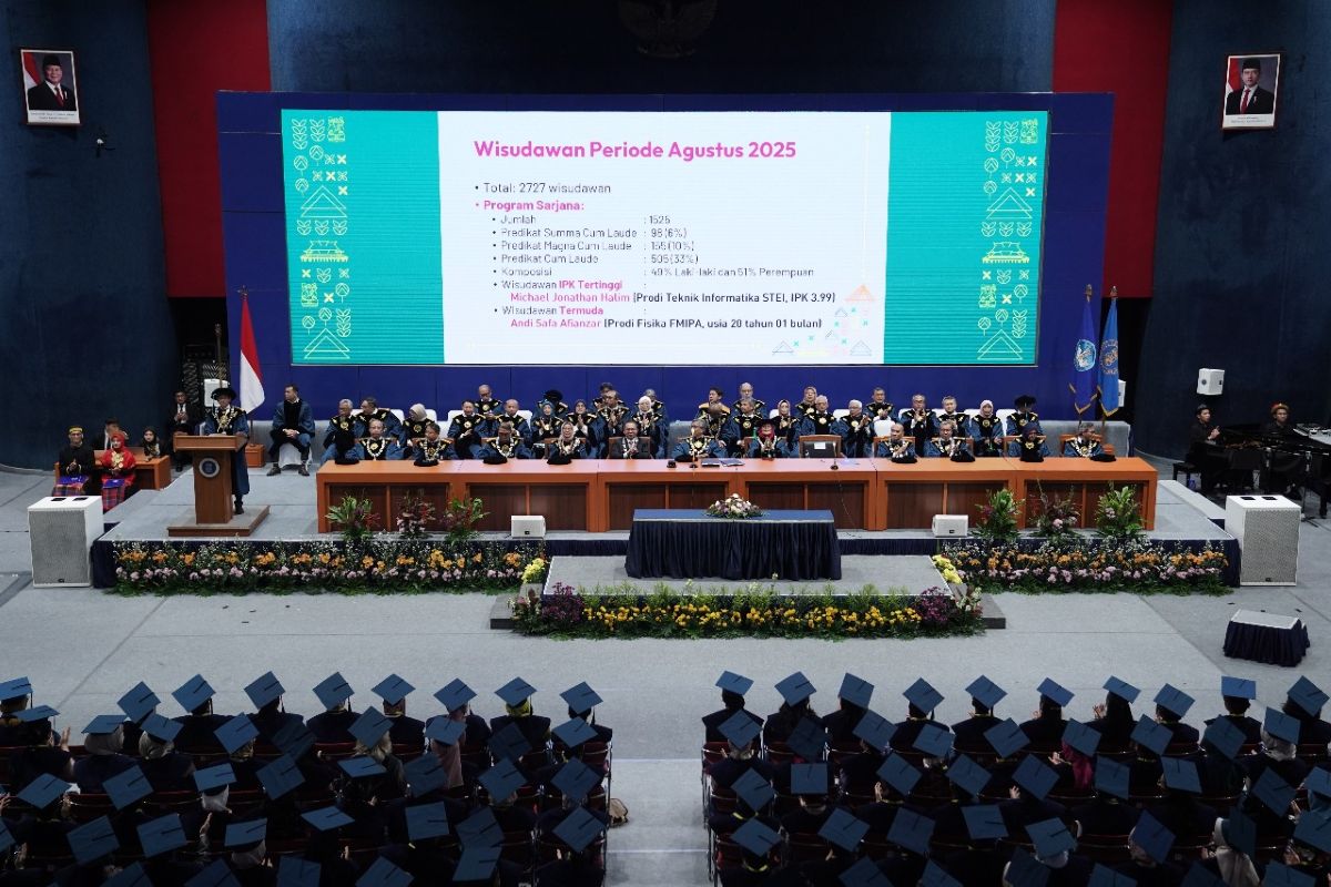 Jumlah tersebut terdiri atas 1.525 wisudawan program sarjana, 1.062 wisudawan program magister, dan 140 wisudawan program doktor. Dari keseluruhan lulusan, tercatat 98 wisudawan lulus dengan predikat summa cum laude, 155 wisudawan dengan predikat magna cum laude, serta 505 wisudawan dengan predikat cum laude.
