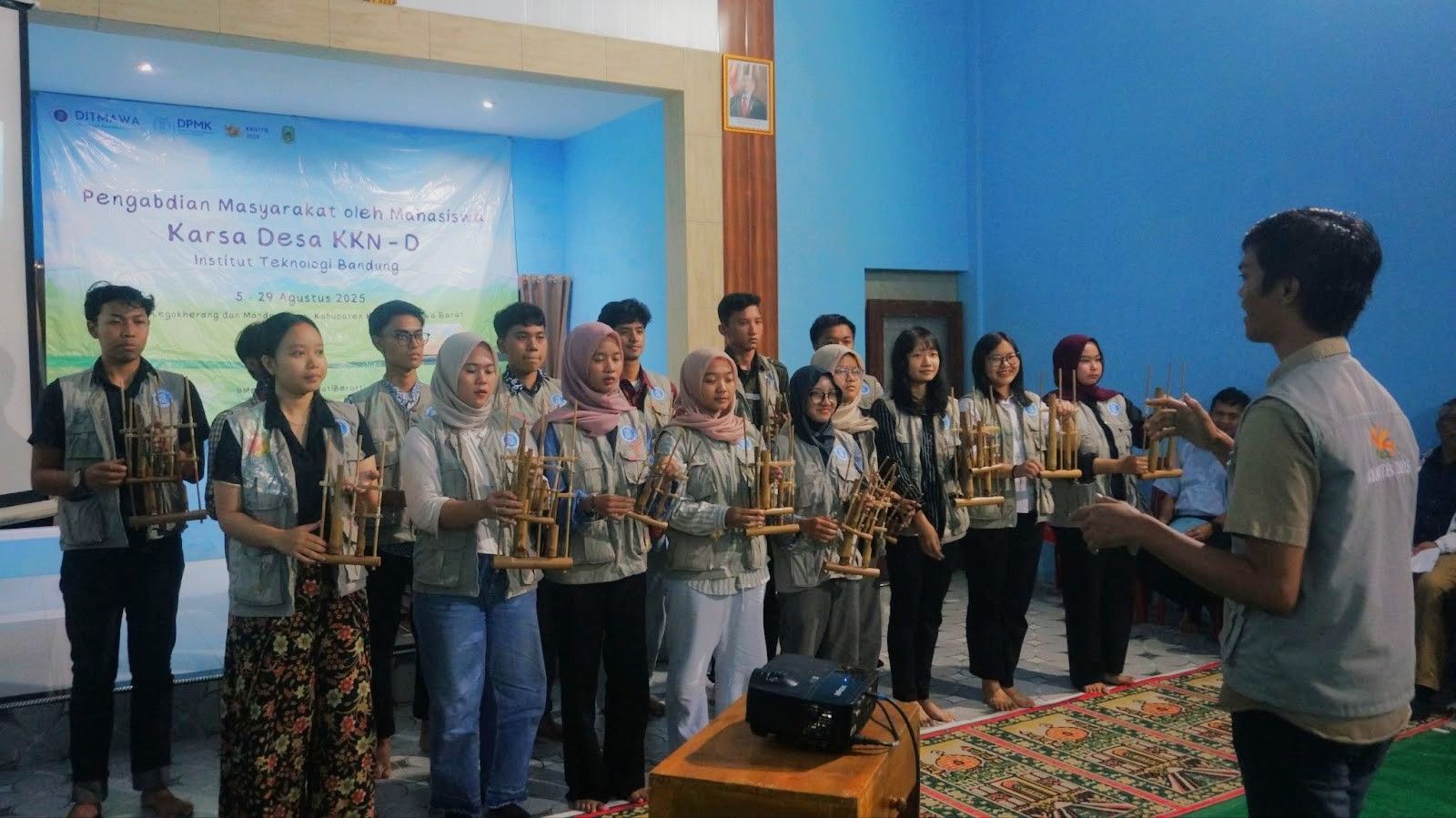Caption: Penampilan Kelompok 9 pada acara perpisahan dengan masyarakat Desa Mandapajaya, Kabupaten Kuningan. (Dok. Kelompok 9 KKN ITB 2025)