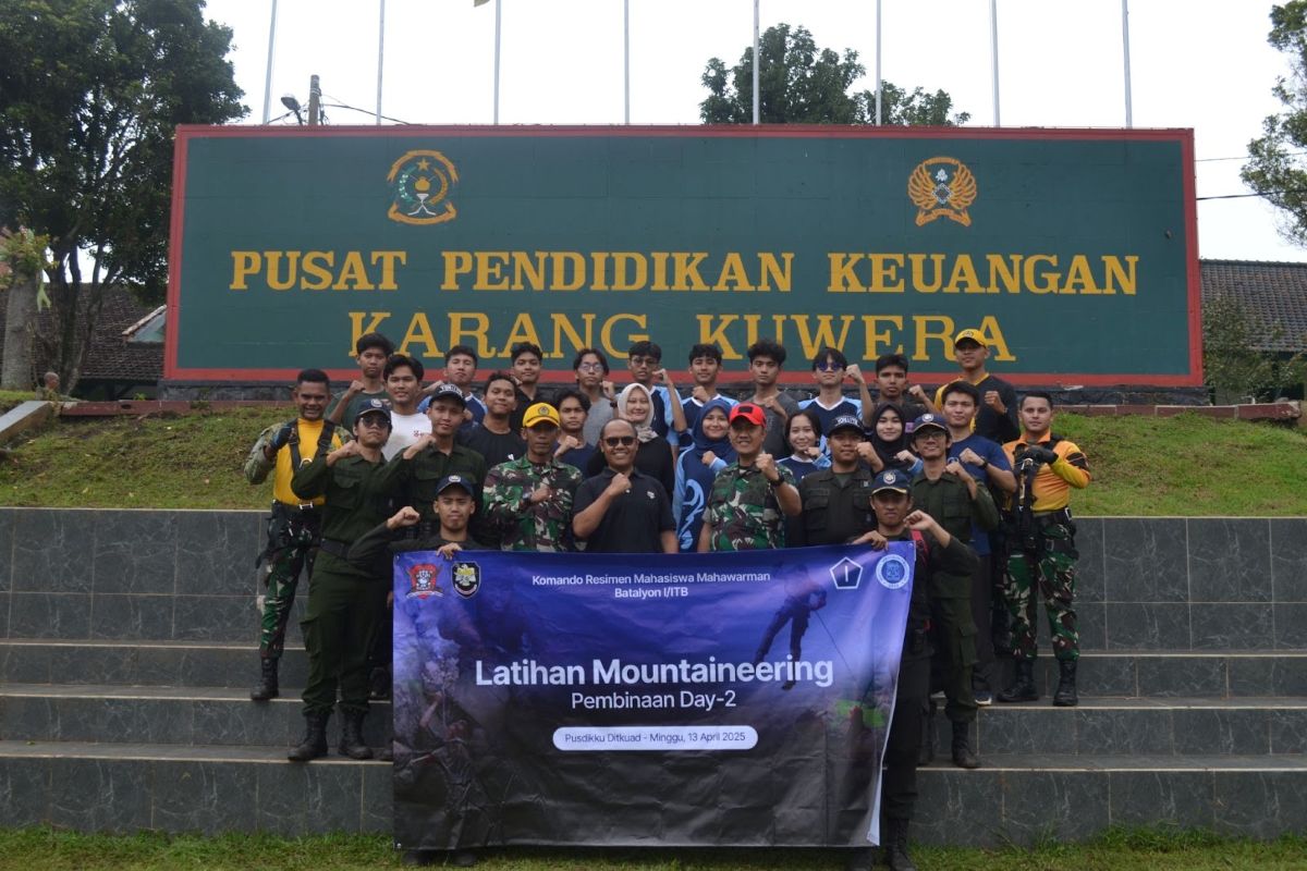 BANDUNG, itb.ac.id - Resimen Mahasiswa Mahawarman Batalyon I/Institut Teknologi Bandung (MENWA ITB) bekerja sama dengan Pusat Pendidikan Keuangan Tentara Nasional Indonesia Angkatan Darat (PUSDIKKU TNI AD) menyelenggarakan kegiatan Latihan Rappelling, Minggu (13/4/2025).
