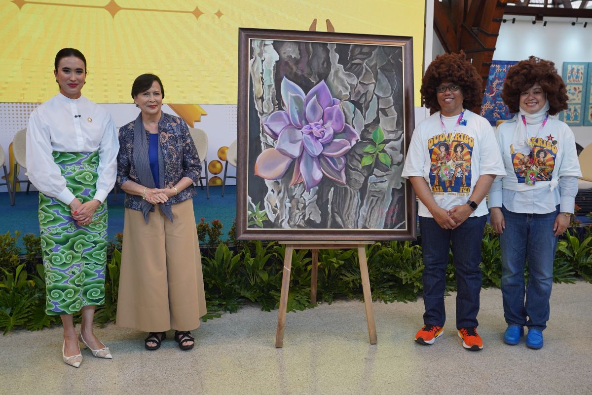 Dalam kesempatan tersebut, Ibunda dari Menteri Pariwisata, Kartini Basuki, juga mendonasikan sebuah lukisan berjudul Sukulen, yang terinspirasi dari tanaman sukulen yang tumbuh di batang pohon tua yang kering, yang merupakan sebuah simbol keteguhan hidup di tengah waktu yang terus berjalan.