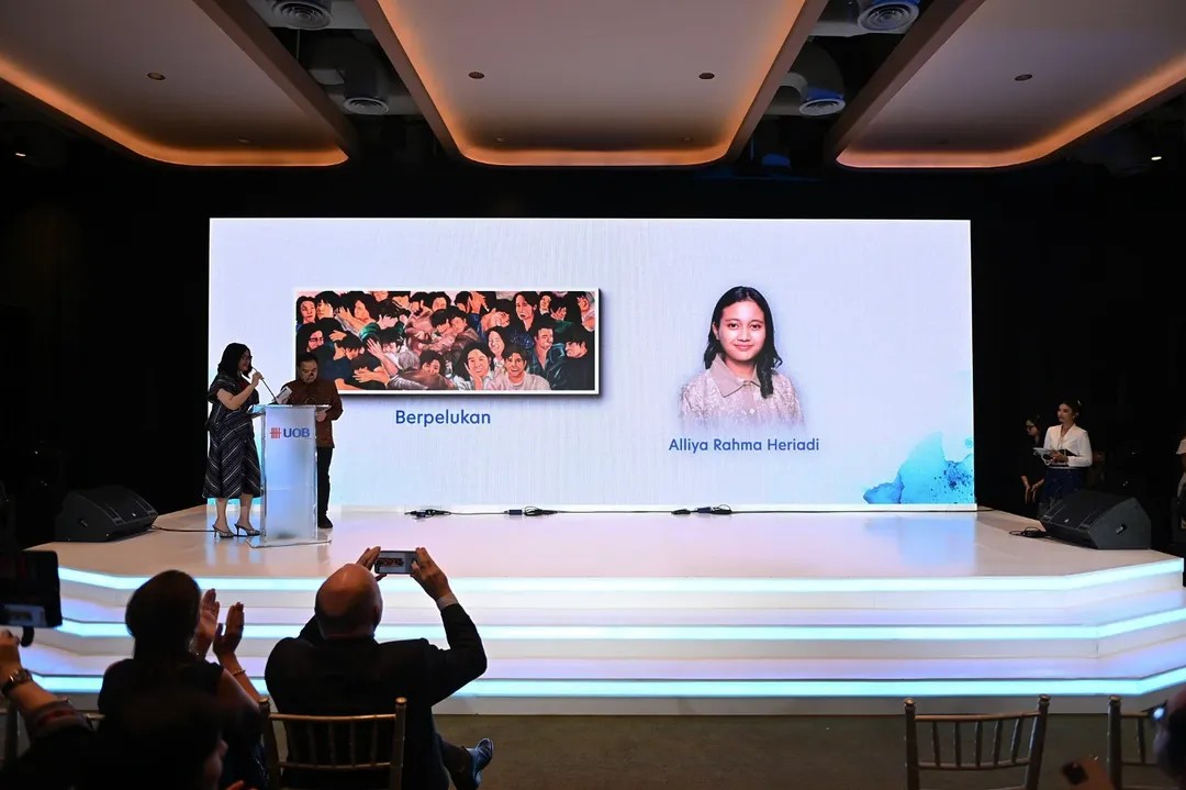 Caption: Penyerahan Piala dan Buket kepada para pemenang kategori Emerging Artist oleh Penyelenggara dalam sesi Awarding UOB Painting of the Year ke-15 di Jakarta, Oktober 2025 (Dok. Pribadi)