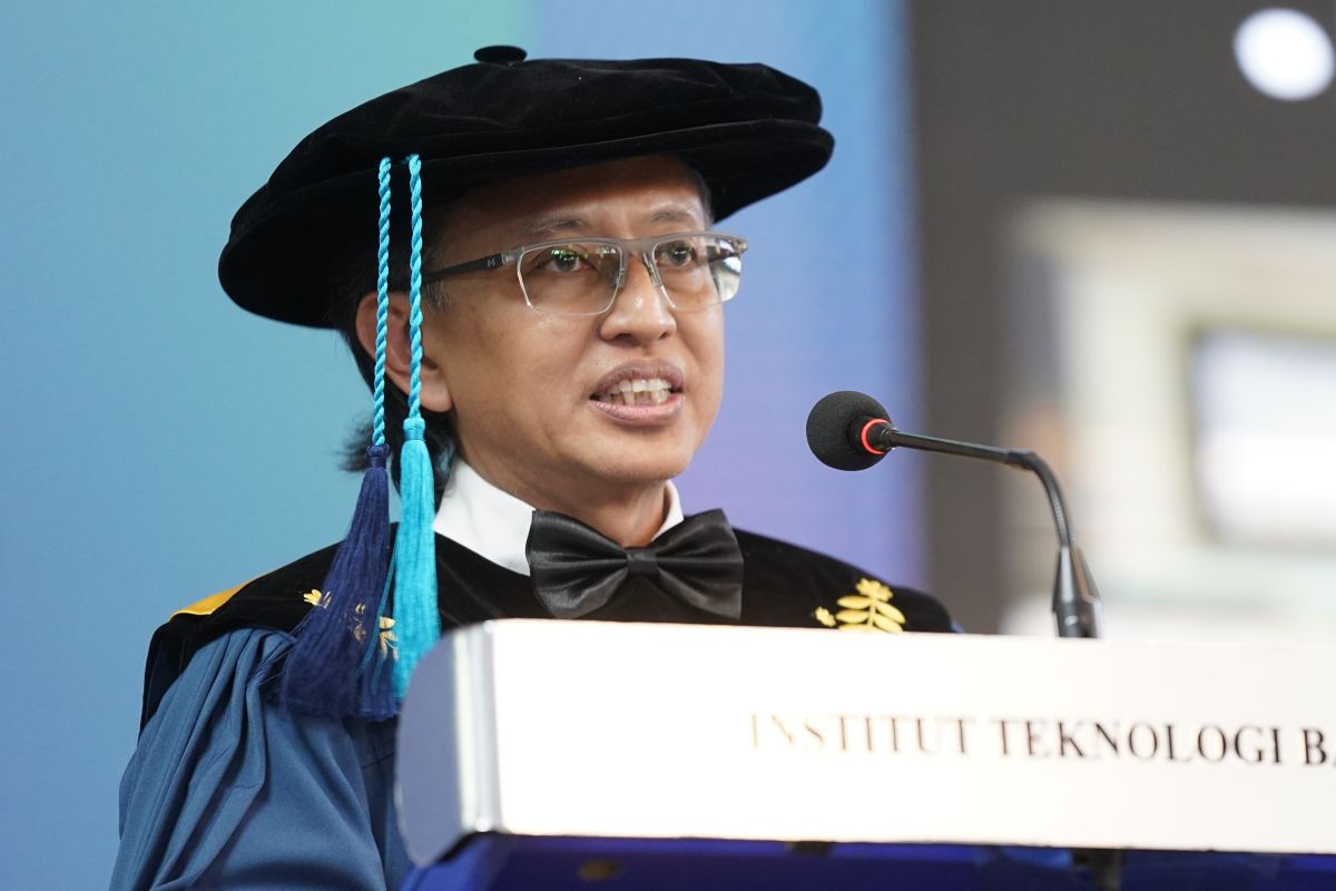 BANDUNG, itb.ac.id - Prof. Dr. Ir. Anas Ma’ruf, M.T. Guru Besar dari Fakultas Teknologi Industri (FTI) ITB menyampaikan orasi ilmiah berjudul “Transformasi Otomasi Sistem Produksi: Integrasi Teknologi Lunak, Keras, dan Siber-Fisik”, di Aula Barat, ITB Kampus Ganesha, Sabtu (15/11/2025).