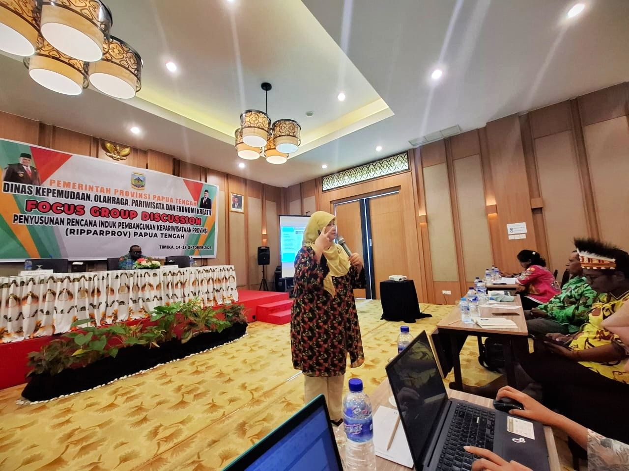TIMIKA, itb.ac.id - Pusat Perencanaan dan Pengembangan Kepariwisataan (P-P2Par) ITB bekerja sama dengan Dinas Kepemudaan, Olahraga, Pariwisata dan Ekonomi Kreatif (Disporaparekraf) Provinsi Papua Tengah melaksanakan kegiatan penyusunan Rencana Induk Pembangunan Kepariwisataan (Ripparprov) Papua Tengah pada tahun 2025. Dalam rangka penyusunan Ripparprov tersebut pada tanggal 14-18 Oktober 2025 dilaksanakan kegiatan diskusi kelompok terpumpun (FGD) di Hotel Swiss Bellinn Timika.