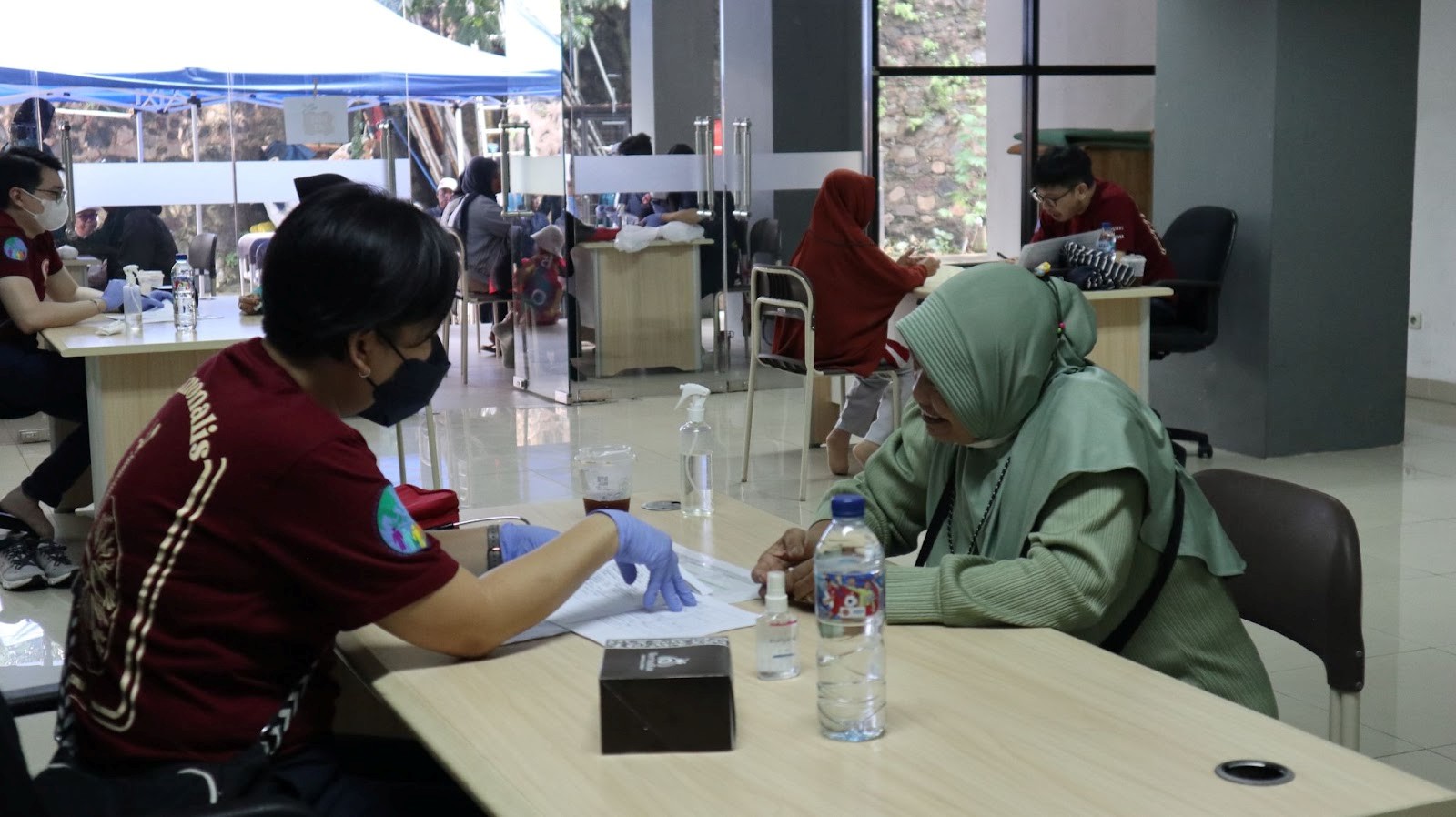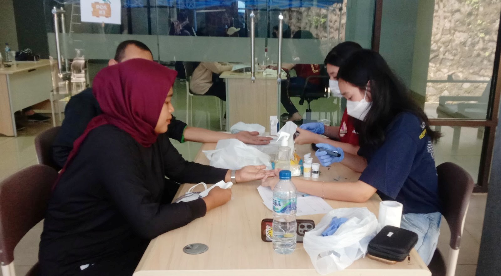 Pos selanjutnya adalah pos 2 dan 3 untuk pemeriksaan kesehatan gratis dengan melibatkan dokter dan mahasiswa dari FK UKM. Pada sesi ini, partisipan mendapatkan kesempatan berkonsultasi langsung dengan dokter serta memperoleh rekomendasi obat sesuai dengan keluhan yang disampaikan saat berkonsultasi.