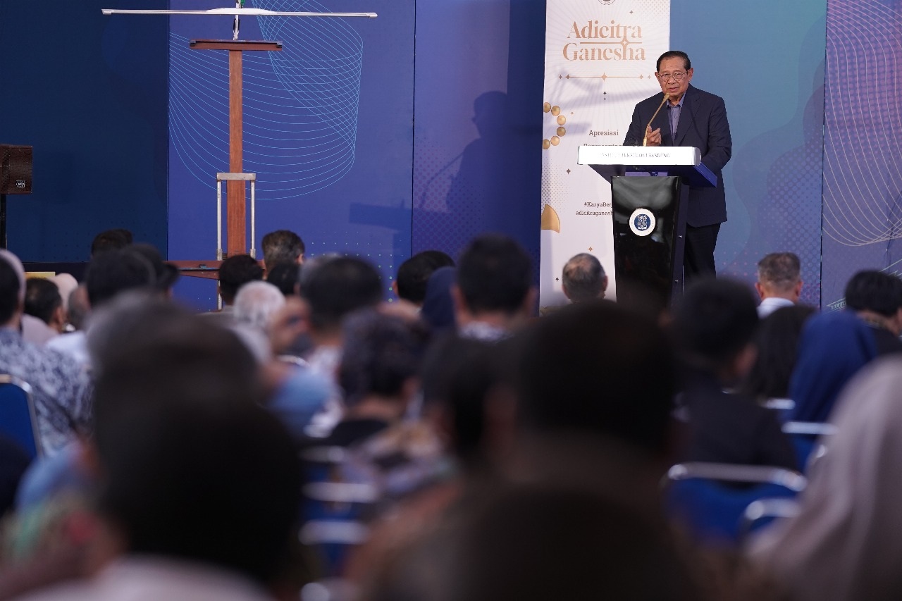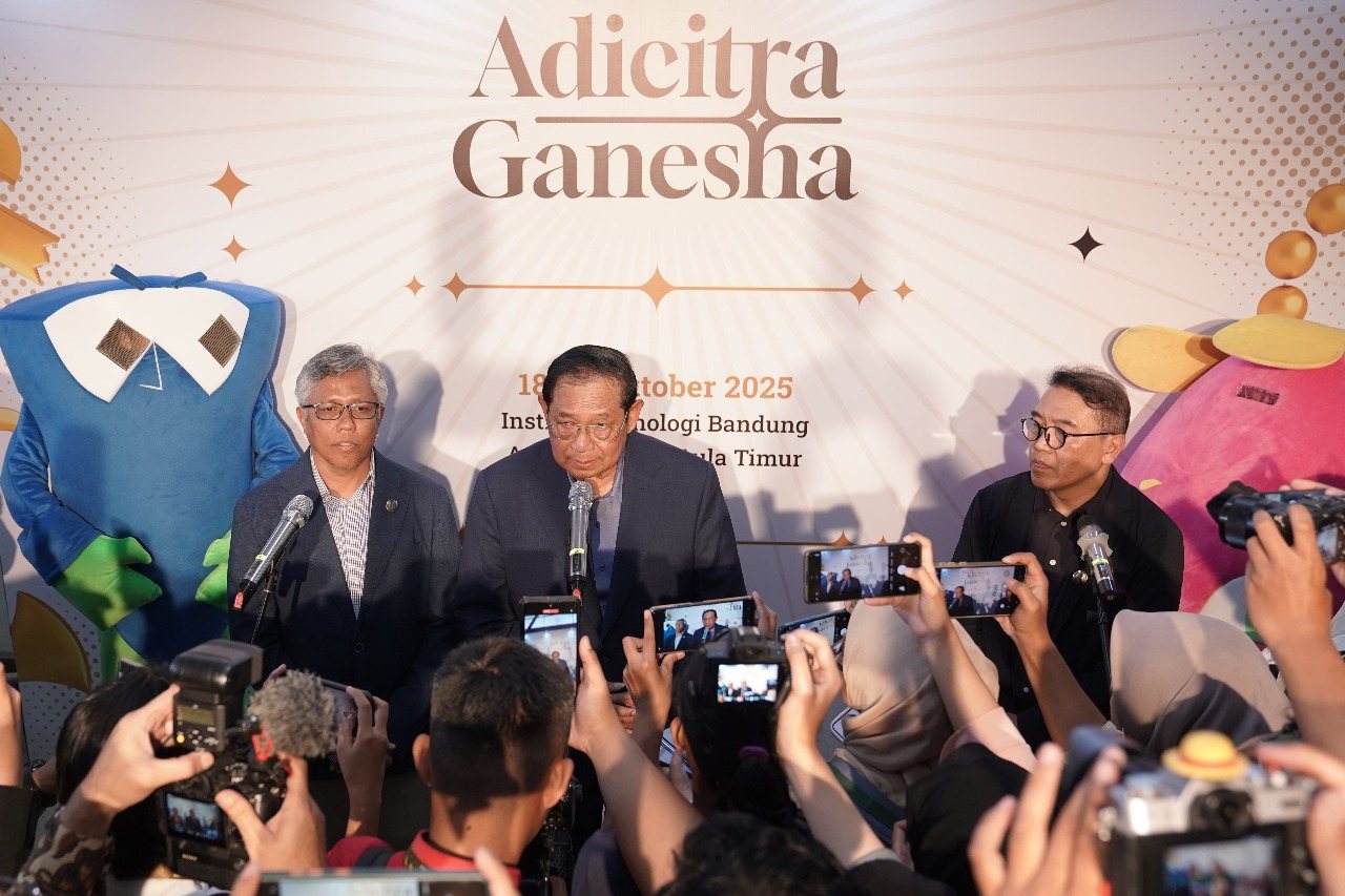 BANDUNG, itb.ac.id – Institut Teknologi Bandung (ITB) menyelenggarakan Adicitra Ganesha 2025 di Aula Barat, ITB Kampus Ganesha, Rabu (8/10/2025). Adicitra Ganesha merupakan pameran dan lelang karya seni yang menghadirkan karya-karya maestro nasional, alumni ITB, dan seniman dari berbagai kota di indonesia. Presiden RI ke-6, Prof. Dr. H. Susilo Bambang Yudhoyono (SBY), hadir menyampaikan Pidato Kebudayaan yang juga mendonasikan lukisannya untuk kemajuan pendidikan di ITB.