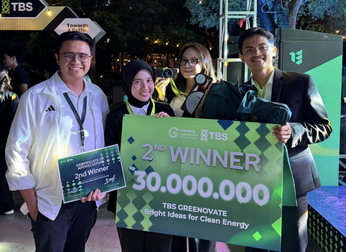 BANDUNG, itb.ac.id – Tim mahasiswa Institut Teknologi Bandung (ITB) yang menamakan diri Tim FLUX berhasil meraih Juara 2 pada ajang Gandeng x TBS Renewable Energy Ideation Challenge 2025. Mereka terpilih melalui proses seleksi ketat dari lebih dari 100 tim tingkat nasional, mengikuti rangkaian mentoring, hingga akhirnya melaju ke babak final pitching.