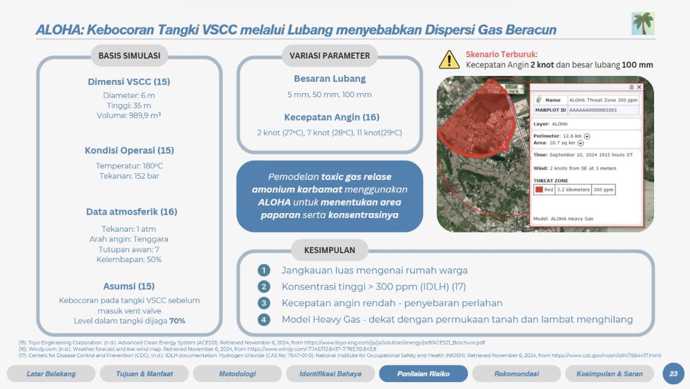 Based on their risk analysis, the team provided both technical and educational recommendations. "On the technical side, we recommended material repairs to minimize corrosion risks, the installation of additional safety devices, and routine maintenance. On the educational side, we recommended awareness campaigns for nearby residents to educate them about potential hazards, evacuation procedures, and early signs of hazardous gas exposure in order to prevent similar incidents in the future," described Ridwan.