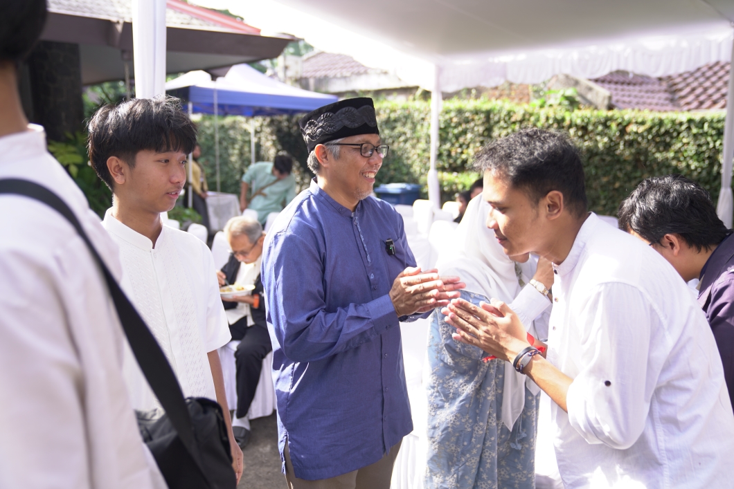 Rektor ITB Prof. Dr. Ir. Tatacipta Dirgantara, M.T. melaksanakan halalbihalal dengan sivitas akademika ITB saat Open House Idulfitri 1446 H, Senin (31/3/2025) di Wisma Rektor ITB, Jalan Ir. H. Juanda, Bandung.