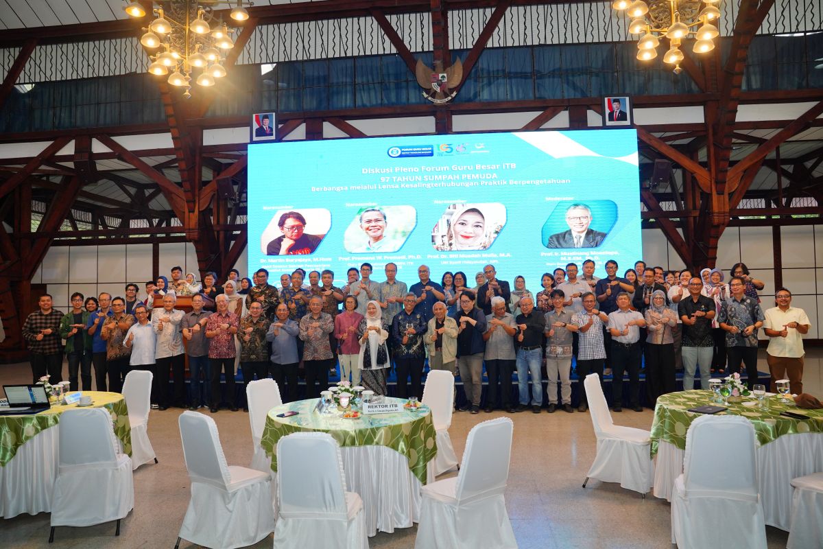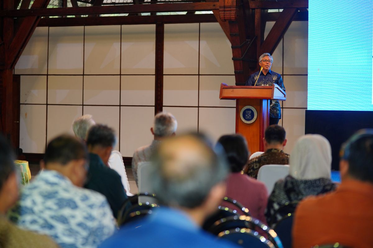 Rektor ITB, Prof. Dr. Ir. Tatacipta Dirgantara, M.T., membuka Diskusi Pleno FGB ITB bertema "97 Tahun Sumpah Pemuda: Berbangsa Melalui Lensa Kesalingterhubungan Praktik Berpengetahuan", Selasa (28/10/2025), di Aula Timur, ITB Kampus Ganesha.