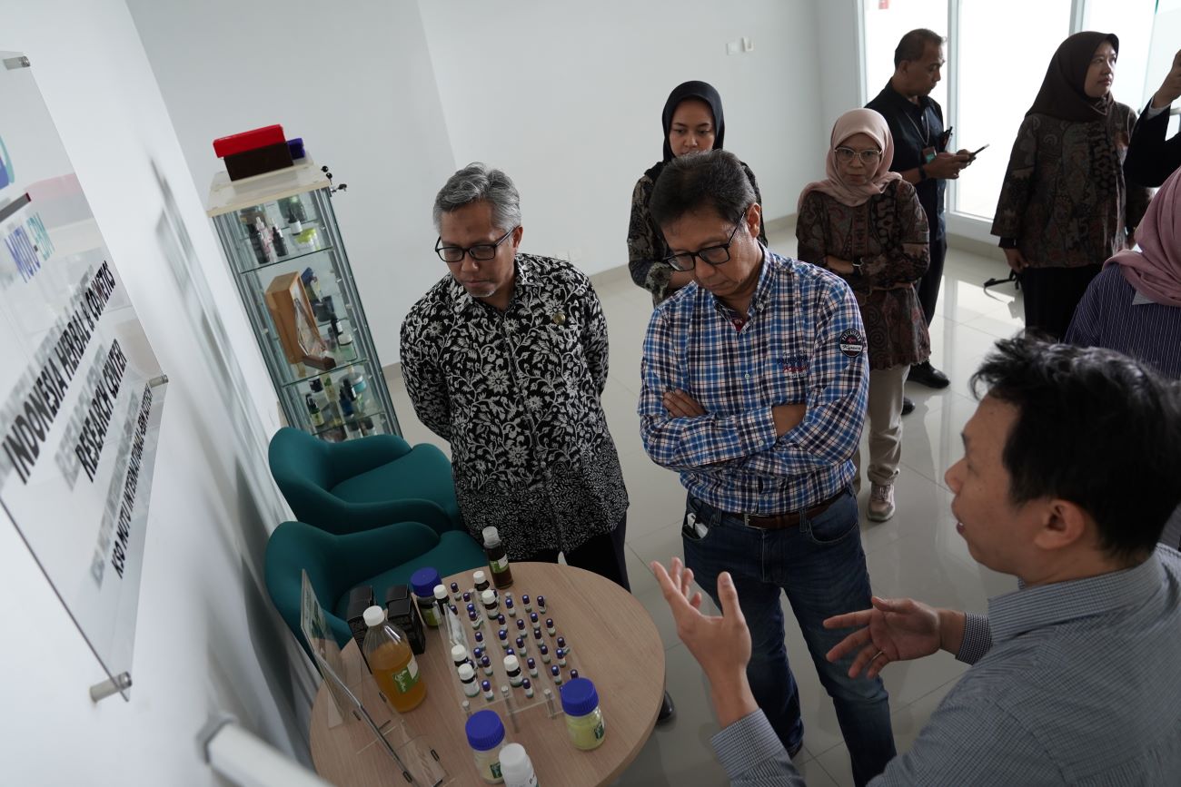 Rektor ITB, Prof. Dr. Ir. Tatacipta Dirgantara, M.T. dan Menteri Kesehatan, Budi Gunadi Sadikin, yang juga Ketua MWA ITB meninjau sejumlah inovasi riset dan teknologi karya dosen dan peneliti ITB, di ITB Innovation Park Bandung Technopolis, Summarecon, Sabtu (2/8/2025).