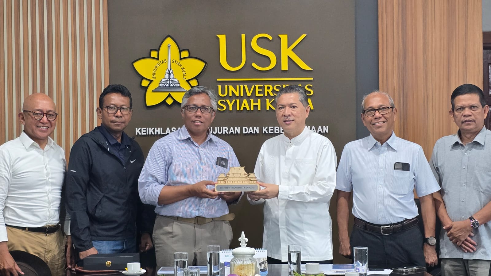 Rektor Universitas Syiah Kuala (USK) Aceh, Prof. Dr. Ir. Marwan, IPU., menerima kunjungan Rektor Institut Teknologi Bandung (ITB), Prof. Dr. Ir. Tatacipta Dirgantara, M.T., Jumat, 26 Desember 2025, di Banda Aceh. Pertemuan ini dihadiri oleh jajaran pimpinan kedua perguruan tinggi dan membahas penguatan kolaborasi Tridarma Perguruan Tinggi, meliputi pendidikan, penelitian, dan pengabdian kepada masyarakat. Salah satu fokus utama diskusi adalah peluang kerja sama konkret dalam mendukung upaya rehabilitasi dan rekonstruksi pascabencana, khususnya melalui kontribusi keilmuan, riset terapan, dan pendampingan masyarakat secara berkelanjutan.
