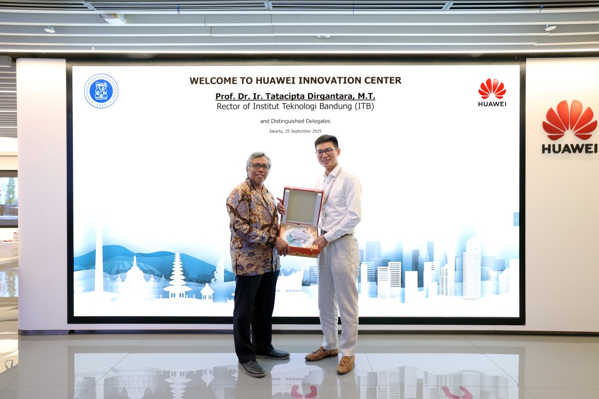 Rektor ITB, Prof. Dr. Ir. Tatacipta Dirgantara, M.T. dan Vice President, Director of Board Huawei Indonesia, Kian Chen menggelar pertemuan di Huawei Innovation Center, Jakarta, Kamis (25/9/2025). Kedua pihak membahas potensi kerja sama antara kampus dan industri. Dalam kesempatan tersebut, turut hadir Direktur Direktorat Kawasan Sains dan Teknologi (DKST) ITB, Ir. R. Sugeng Joko Sarwono, M.T., Ph.D., dan Dekan STEI ITB, Prof. Dr. Ir. Tutun Juhana, S.T., M.T.