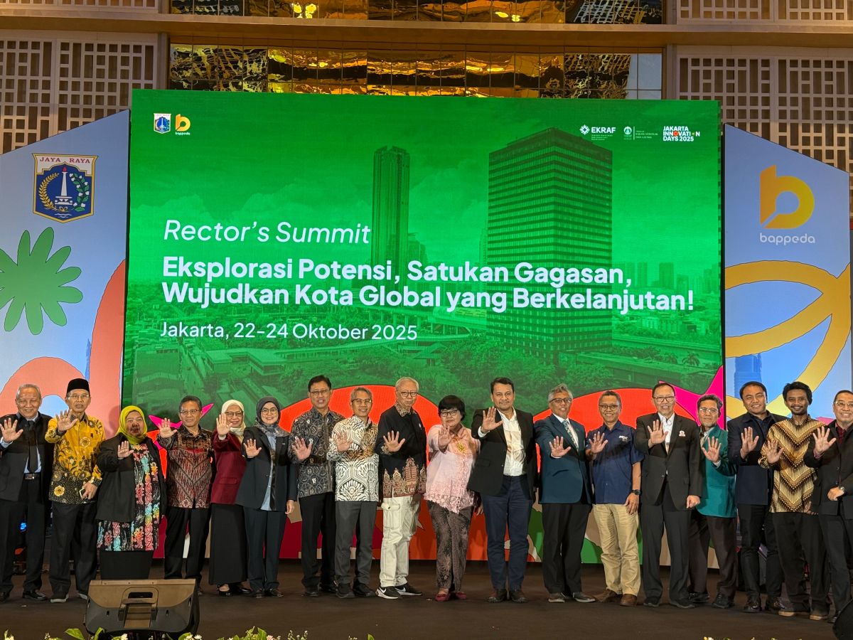 Rektor ITB, Prof. Dr. Ir. Tatacipta Dirgantara, M.T. menghadiri Rector's Summit, di Jakarta, Rabu (22/10/2025), yang digelar Pemerintah Provinsi DKI Jakarta. Kegiatan ini menjadi wadah untuk menyuarakan inovasi dalam pembangunan kota lewat keterlibatan akademisi. Dalam hal ini, perguruan tinggi dan lembaga riset turut berperan sebagai mitra strategis dalam memastikan arah pembangunan yang berkelanjutan, khususnya bagi DKI Jakarta, dengan mengedepankan research-based policy dan data-driven policy untuk menjawab kebutuhan nyata masyarakat. Dalam kesempatan tersebut, hadir pula Direktur Eksekutif Multi Kampus ITB, Prof. Dr. Sri Maryati, S.T., MIP.
