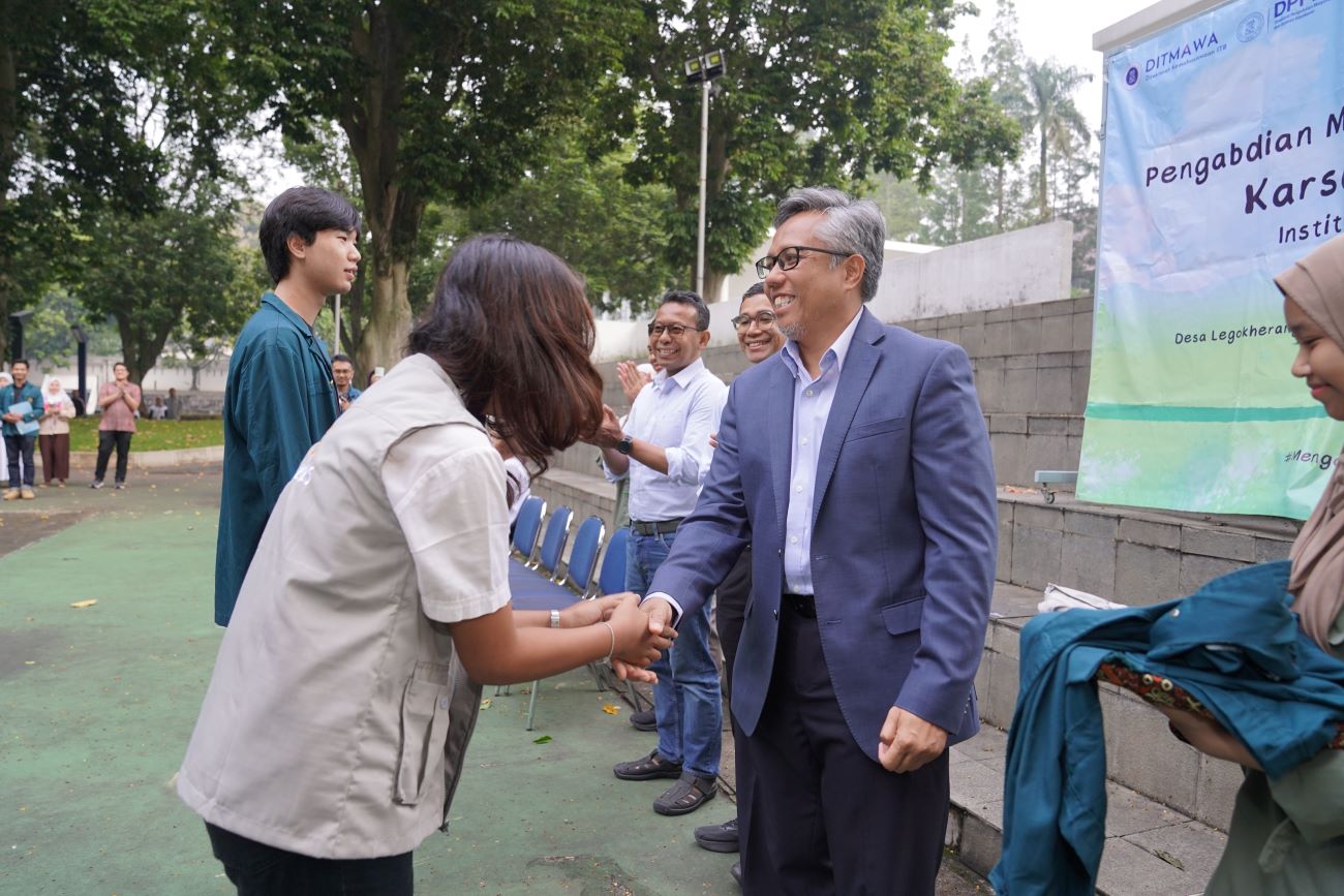 Rektor ITB, Prof. Dr. Ir. Tatacipta Dirgantara, M.T. melepas 342 mahasiswa untuk mengikuti kegiatan Kuliah Kerja Nyata (KKN) Tematik-Domestik (KKN-D) Tahun 2025, Selasa (5/8/2025). Ratusan mahasiswa tersebut akan mengabdi di Desa Legokherang dan Desa Mandapajaya, Kecamatan Cilebak, Kabupaten Kuningan, Jawa Barat.