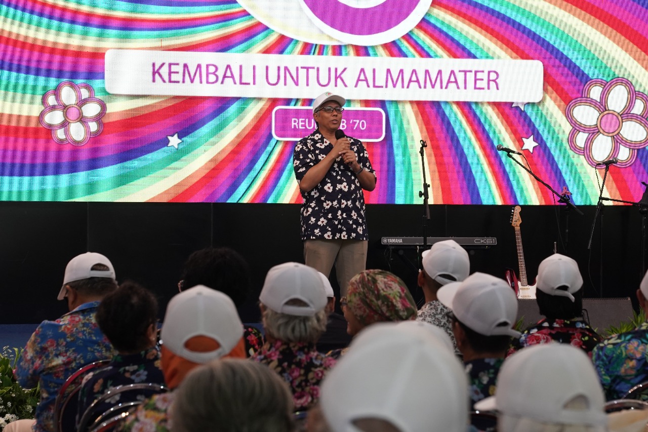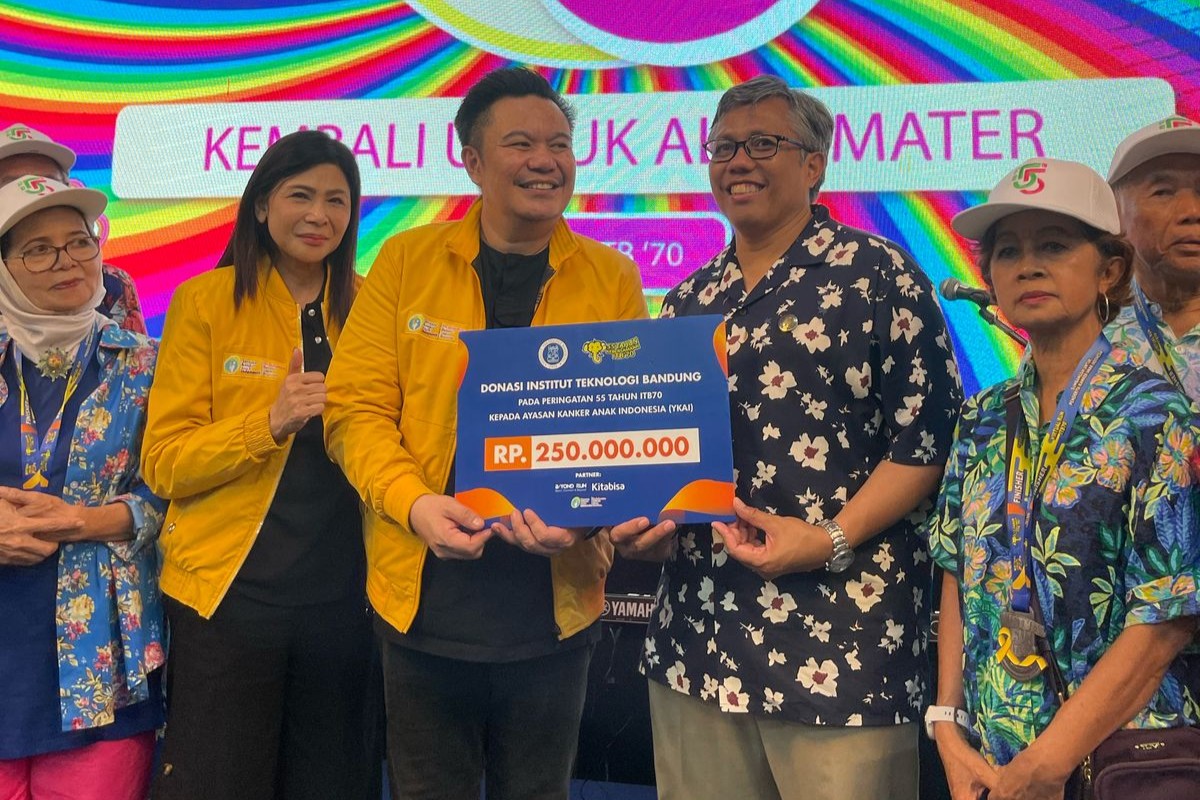 Rector of ITB, Prof. Dr. Ir. Tatacipta Dirgantara, M.T., attended the ITB Alumni Reunion Class of '70: "55th Anniversary of ITB70" at the East Hall, ITB Ganesha Campus, on Tuesday (April 22, 2025). On this occasion, the ITB70 Alumni symbolically handed over a donation of IDR 500 million to the ITB Endowment Fund and another IDR 500 million for the Alumni Creative Space. In addition, a donation of IDR 250 million raised from the ITB70 Virtual Run was also presented to the Indonesian Childhood Cancer Foundation (YKAI).