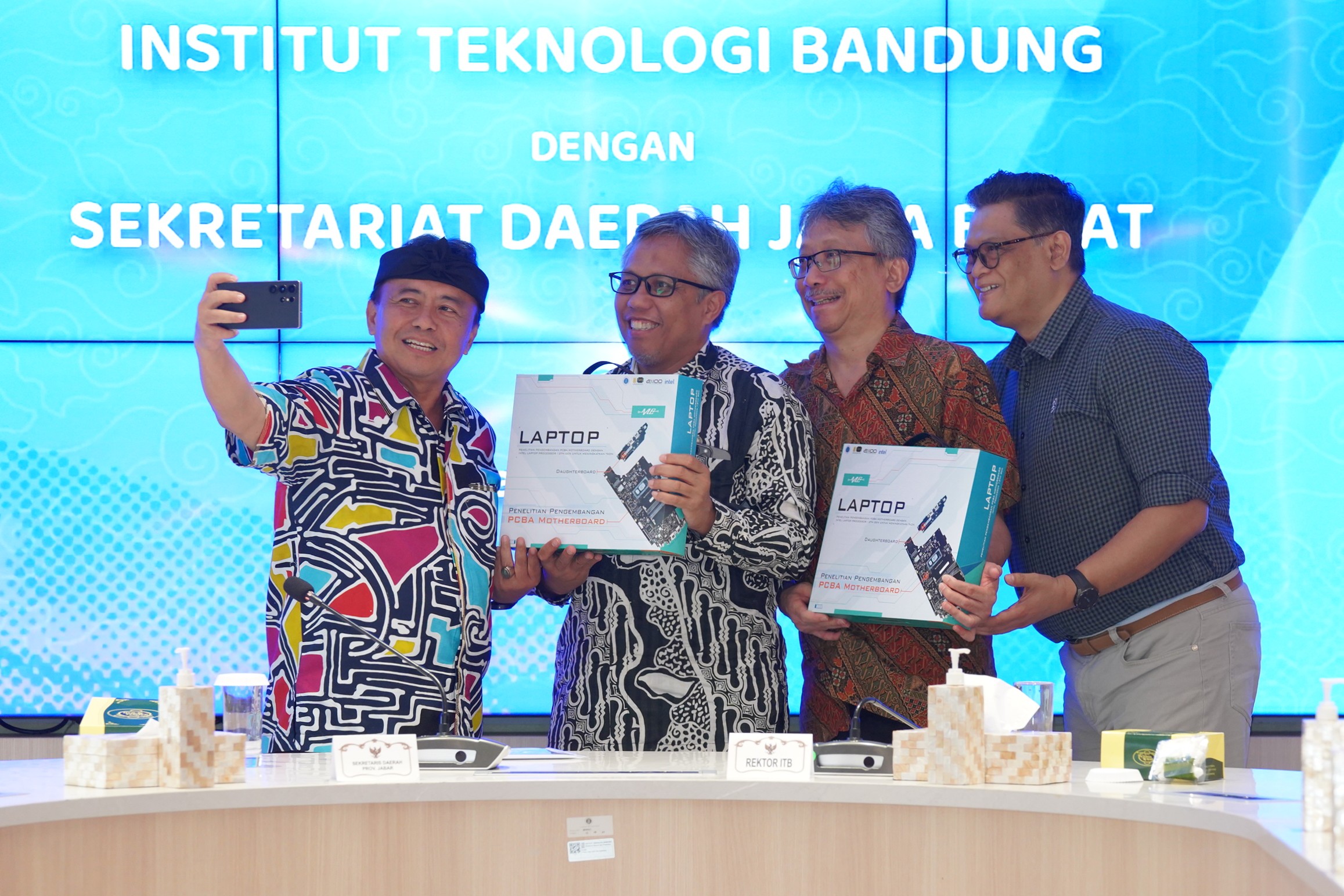 ITB Rector, Prof. Dr. Ir. Tatacipta Dirgantara, M.T., handed over two laptop units—resulting from a collaboration between ITB, PT Tera Data Indonusa Tbk (Axioo), and Intel—to the Regional Secretary of West Java Province, Herman Suryatman, at the ITB Rectorate Building, Friday (August 1, 2025). The laptops will be used by civil servants (ASN) in the West Java Provincial Government.