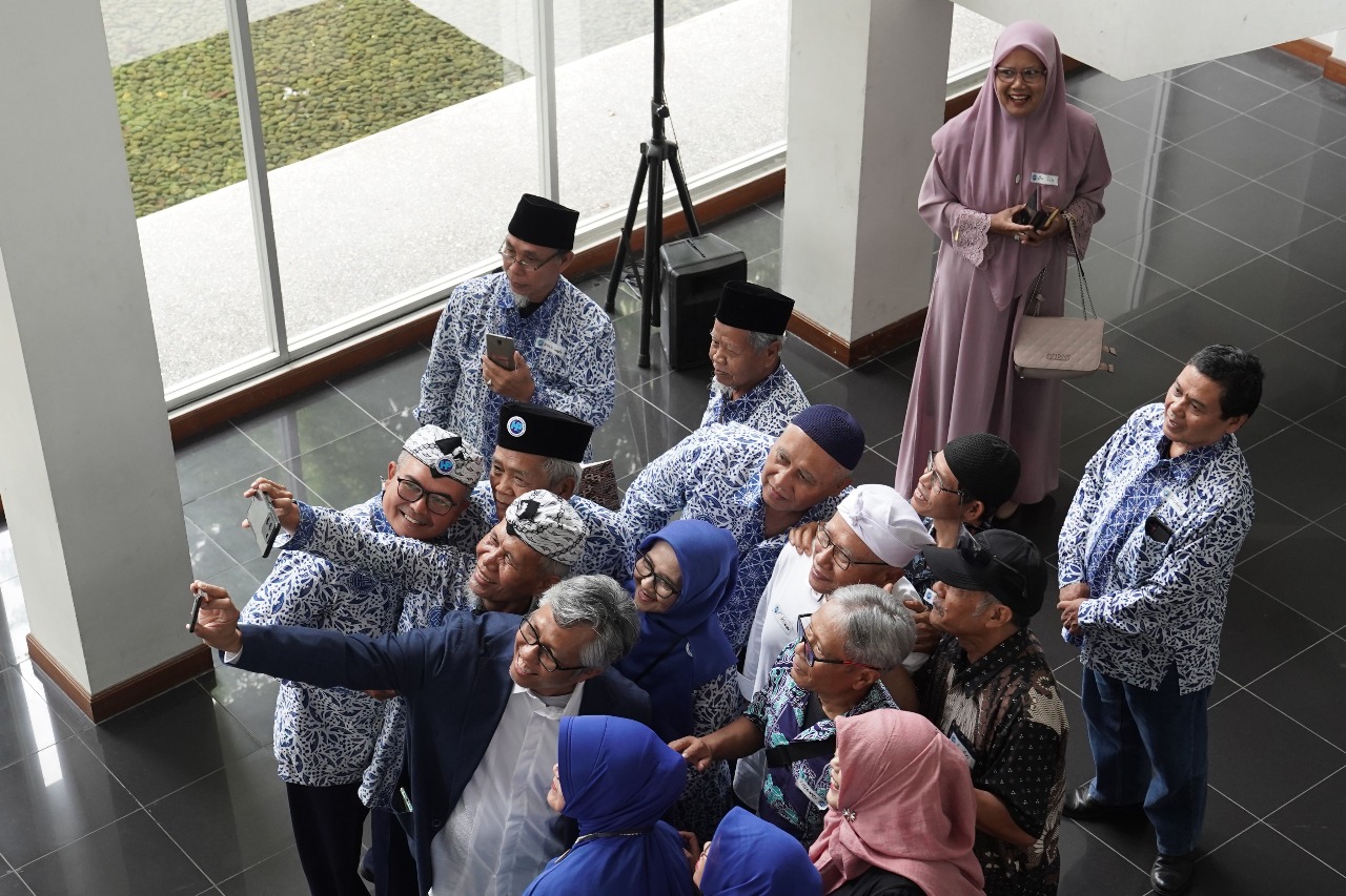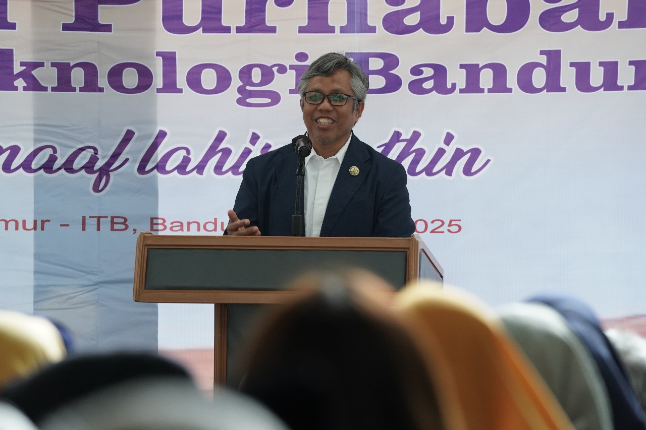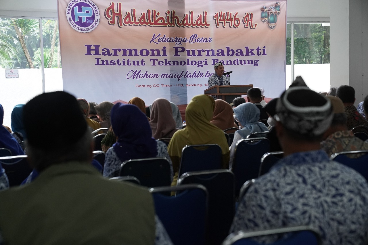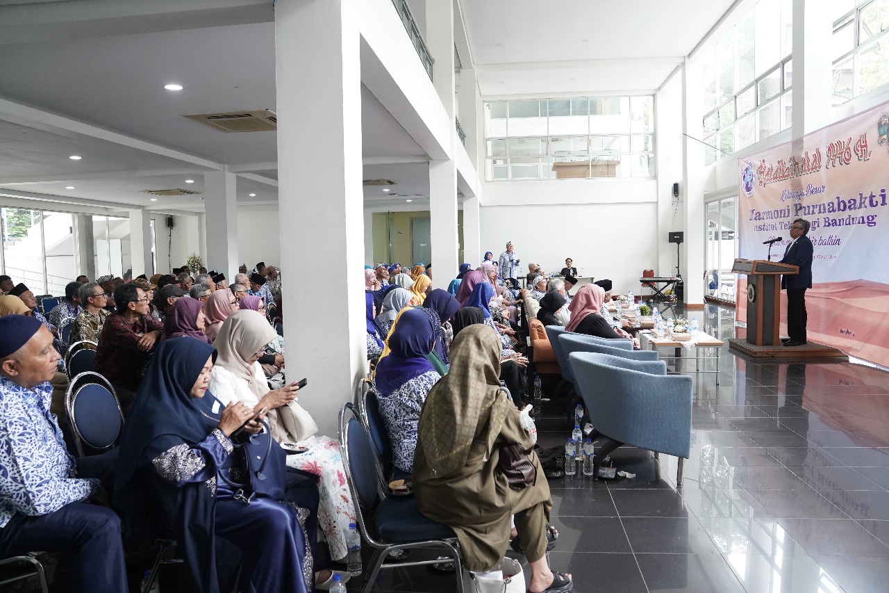 Rektor ITB Prof. Dr. Ir. Tatacipta Dirgantara, M.T. dan Wakil Rektor Bidang Komunikasi, Kemitraan, Kealumnian, dan Administrasi (WRKMAA) Dr. Andryanto Rikrik Kusmara, S.Sn., M.Sn. bersilaturahmi dengan Keluarga Besar Harmoni Purnabakti ITB di Campus Center Timur, ITB Kampus Ganesha, Sabtu (12/4/2025).