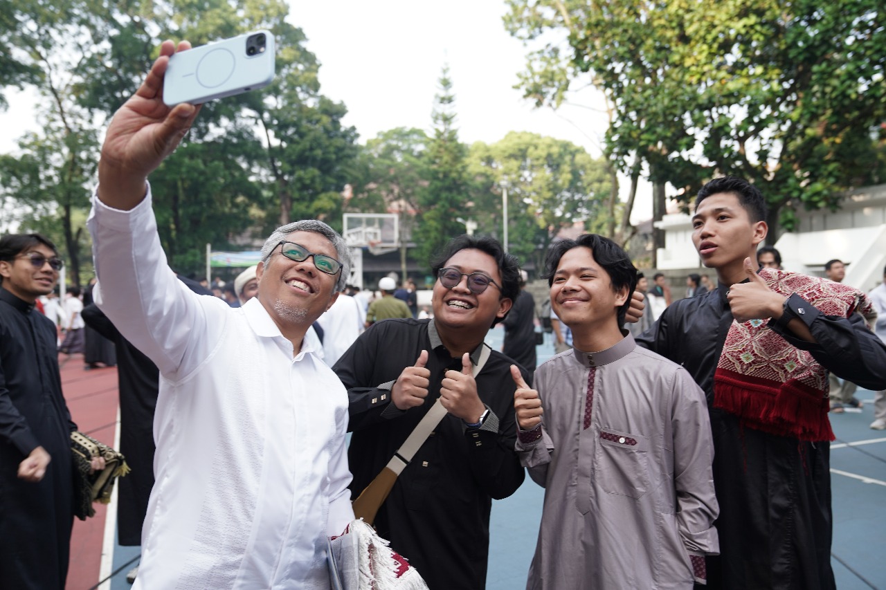 Rektor ITB, Prof. Dr. Ir. Tatacipta Dirgantara, M.T. bersilaturahmi dengan Menteri Ketenagakerjaan RI, Prof. Yassierli, S.T., M.T., Ph.D., Jumat (6/6/2025). Prof. Yassierli menjadi imam dan khatib Salat Iduladha 1447 H di ITB Kampus Ganesha. Selain itu, Prof. Tata juga bersilaturahmi dengan sivitas akademika ITB dan warga sekitar yang melaksanakan Salat Id di kampus.